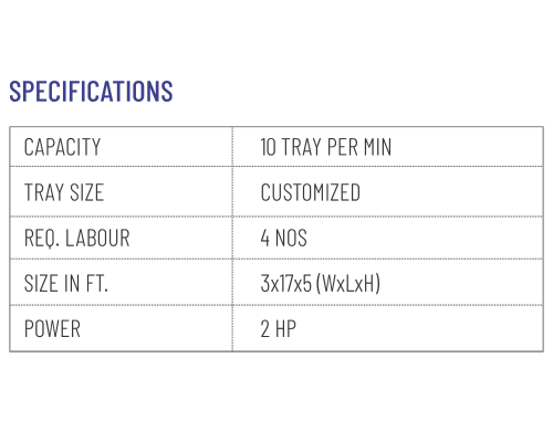 Our Rusk Laying Machine is a high-performance solution designed to automate and streamline the process of arranging rusks on baking trays with precision. This machine ensures uniform spacing and alignment, improving baking consistency while reducing manual labor. Ideal for large-scale rusk production, it enhances efficiency, hygiene, and productivity in bakeries and food processing units.